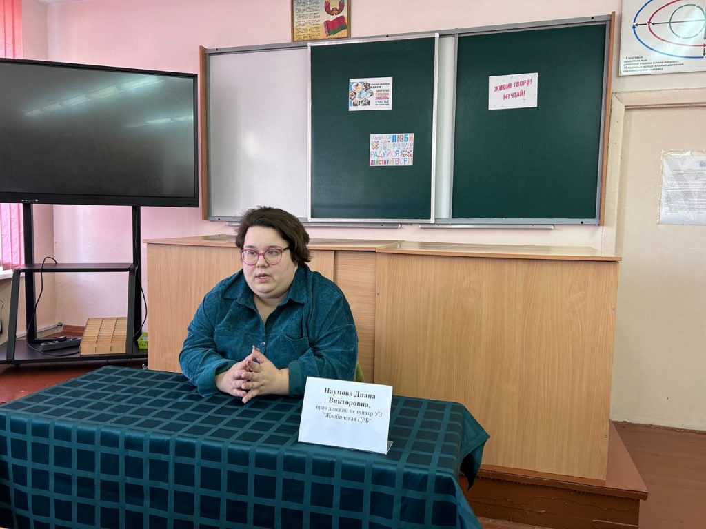 2 апреля 2026 года в гимназии №8 имени В.И.Козлова г.Жлобина прошла встреча, посвященная важности психологического благополучия подрастающего поколения. В рамках профилактической недели «Верить! Творить! Жить!» учащиеся встретились с детским врачом-психиатром Жлобинской ЦРБ, Дианой Викторовной Наумовой.
