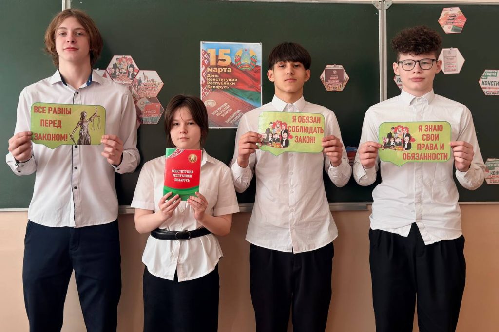 13 марта 2026 года в государственном учреждении образования “Гимназия №8 имени В.И.Козлова г.Жлобина” прошёл Единый урок, посвящённый Дню Конституции Республики Беларусь.🇧🇾 Учащиеся более подробно познакомились с историей Конституции Республики Беларусь, с наиболее интересными фактами об Основном Законе государства, а также обсудили вопросы важности существования Конституции и паспорта в любом государстве.⚡️ Единый урок проводился с целью патриотического воспитания подрастающего поколения, формирования национального и гражданского самосознания, привлечения молодёжи к социально значимой деятельности во благо общества и государства. Быть достойным гражданином Республики Беларусь – обязанность каждого из нас!✨